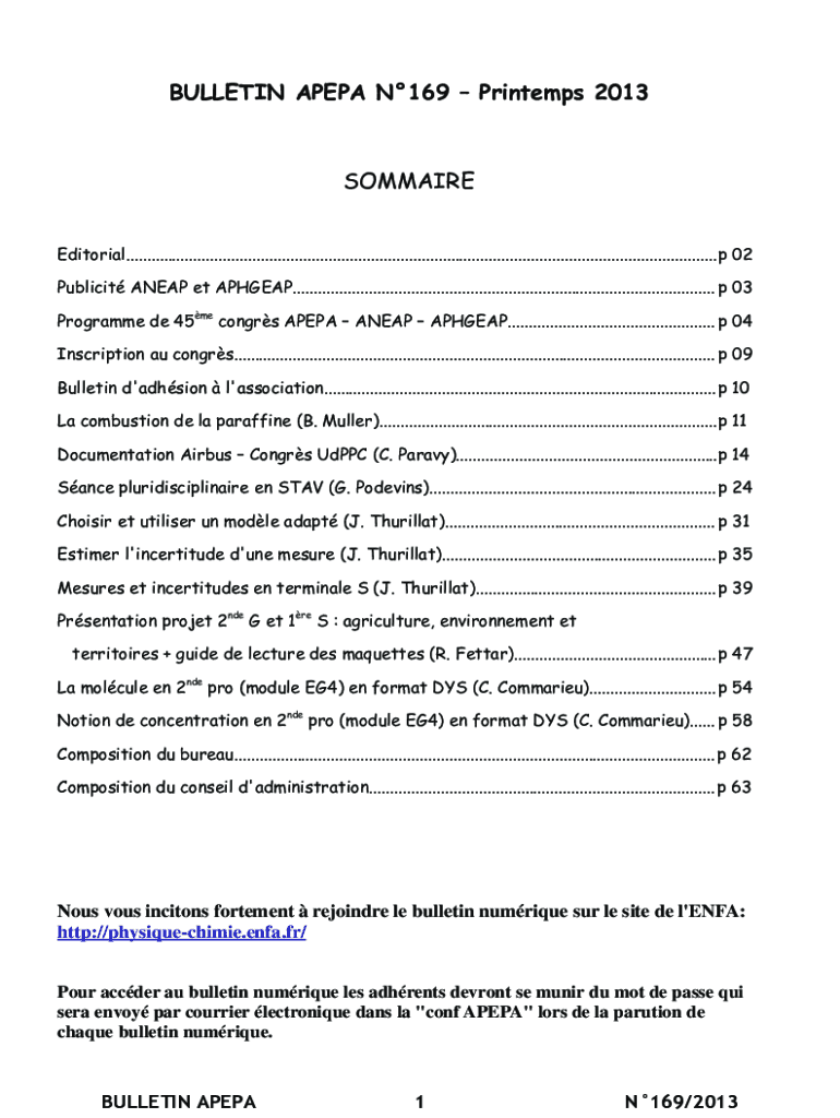 BULLETIN AP EPA N169 Printers 2013SOMMAIRE Editorial............................................................................................................................................p 02