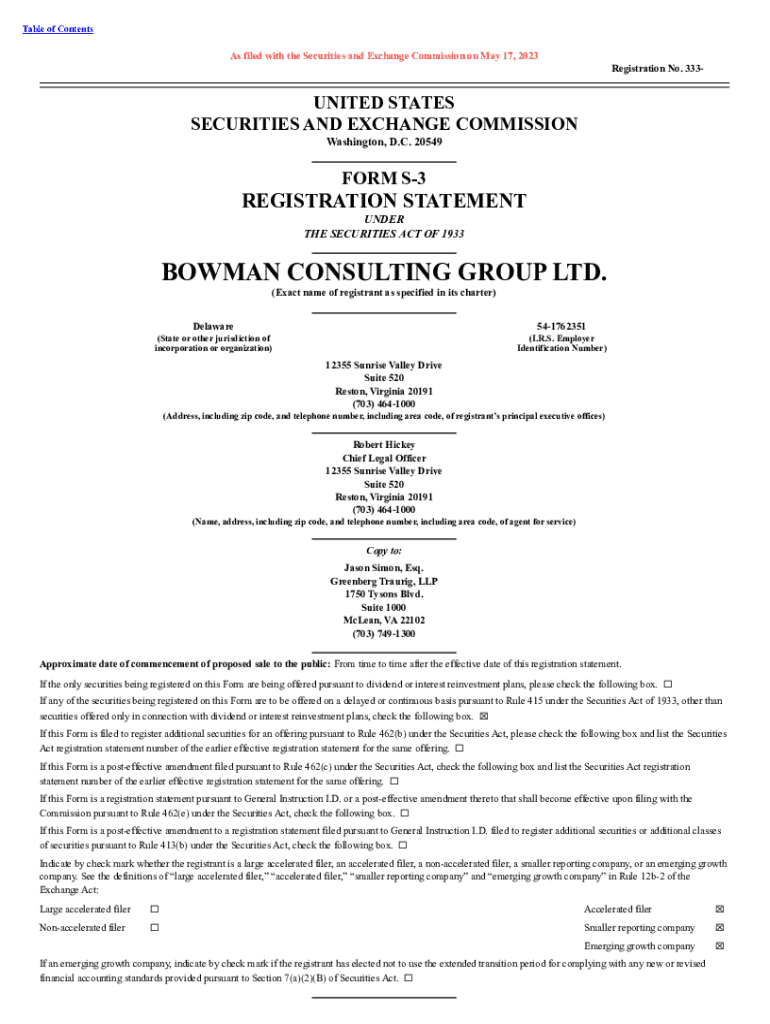 Table of Contents As filed with the Securities and Exchange Commission on May 17, 2023, Registration No.333 UNITED STATES SECURITIES AND EXCHANGE COMMISSION Washington, D.C. 20549 FORM S3REGISTRATION