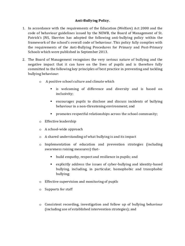 Fill out your anti bullying - stdominics online with pdfFiller!