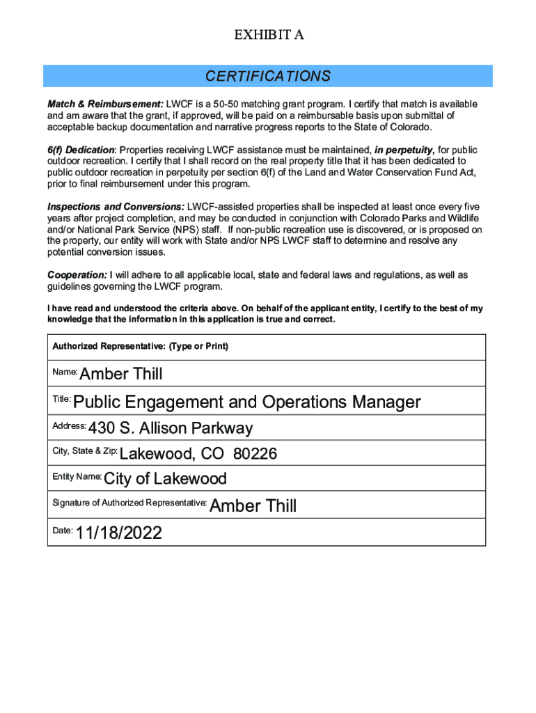 EXHIBIT ALW CF GRANT APPLICATION CHECK LIST MANDATORY:(Return this completed form with your application)Signed letter of resolution from Governing Body that includes resources/support committed to