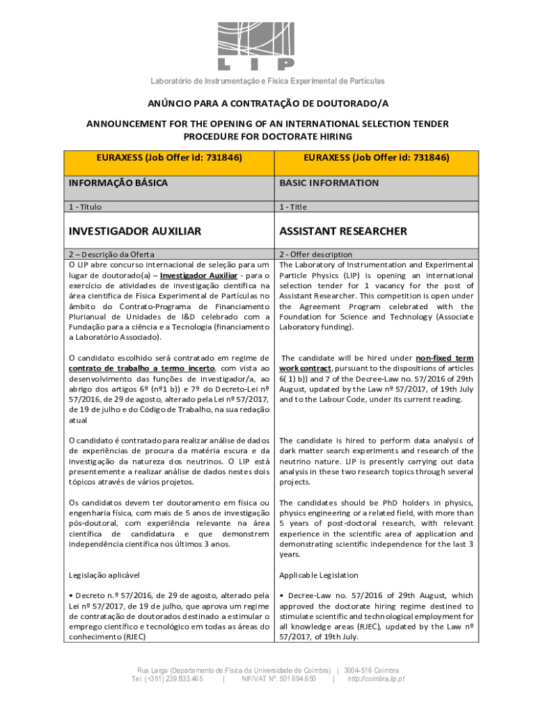 Laboratory de Instrumentao e FICA Experimental de PartculasANNCIO PARA A CONTRA TAO DE COLORADO/A
