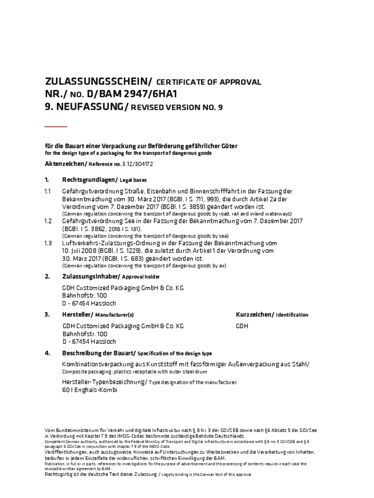 Holen Sie sich kostenlos NR./ NO. D/BAM 2947/6HA1 - BAM - TES - BAM.de