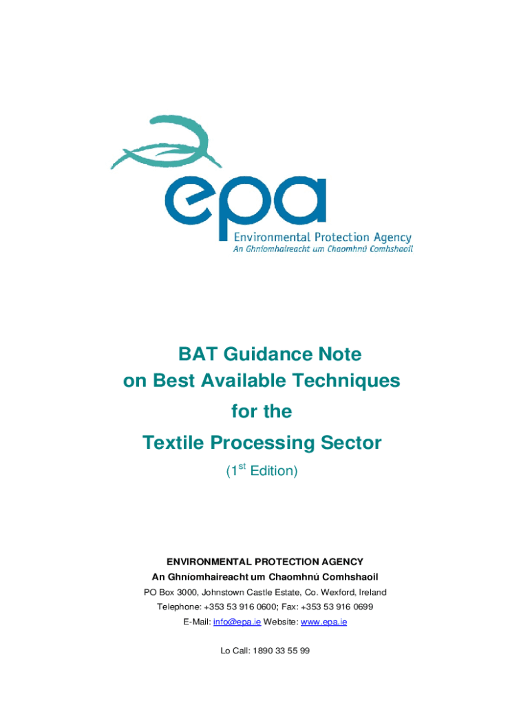 BAT Guidance Note on Best Available Techniques for the Textile Processing Sector (1st Edition)ENVIRONMENTAL PROTECTION AGENCY An Ghnomhaireacht um Chapman Comhshaoil PO Box 3000, Johnstown Castle