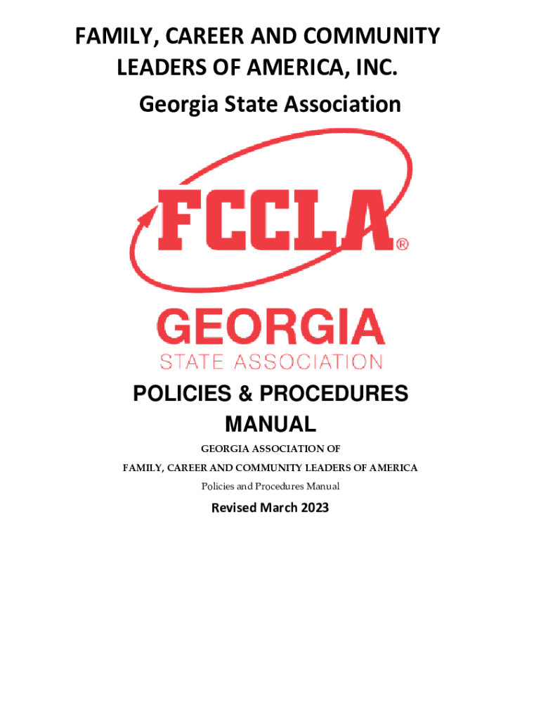 FAMILY, CAREER AND COMMUNITY LEADERS OF AMERICA, INC. Georgia State AssociationPOLICIES & PROCEDURES MANUAL GEORGIA ASSOCIATION OF FAMILY, CAREER AND COMMUNITY LEADERS OF AMERICA Policies and Procedures
