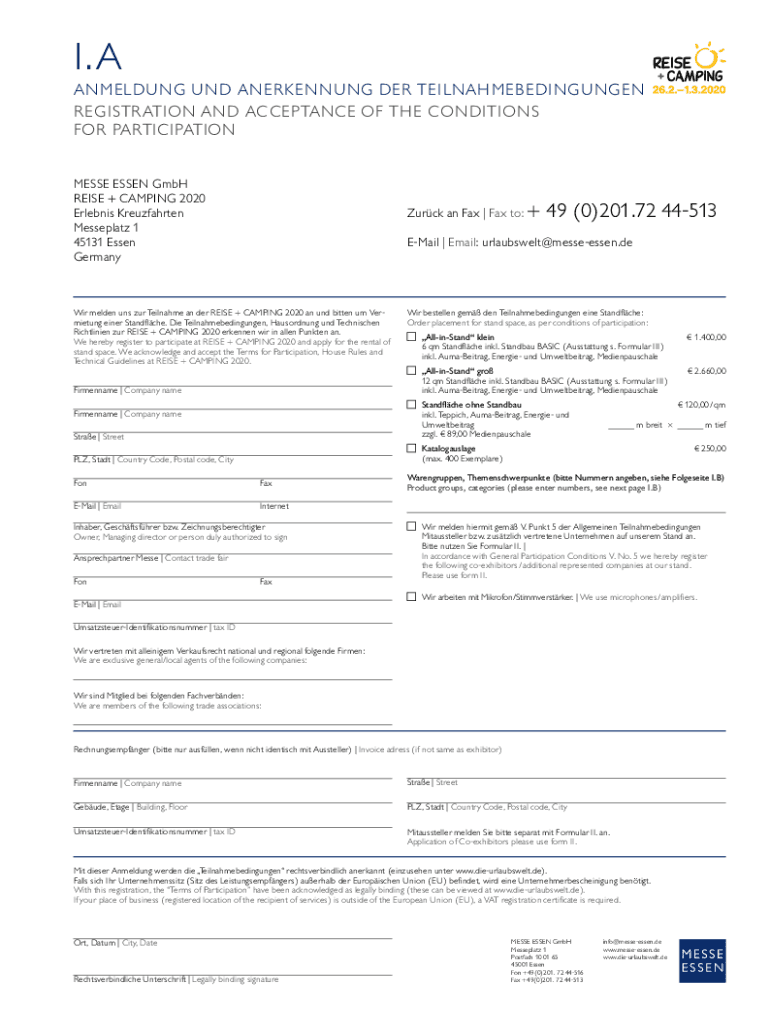 Wie fülle ich reise camping die urlaubsmesse aus?
