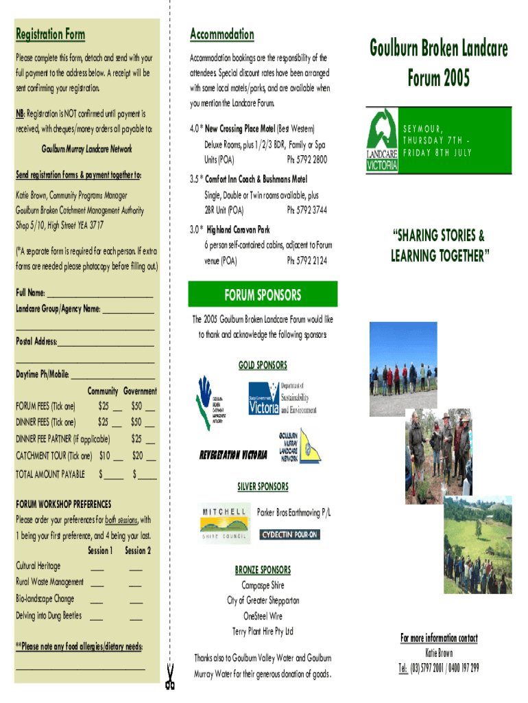 Registration FormAccommodationPlease complete this form, detach and send with your full payment to the address below. A receipt will be sent confirming your registration. Accommodation bookings are