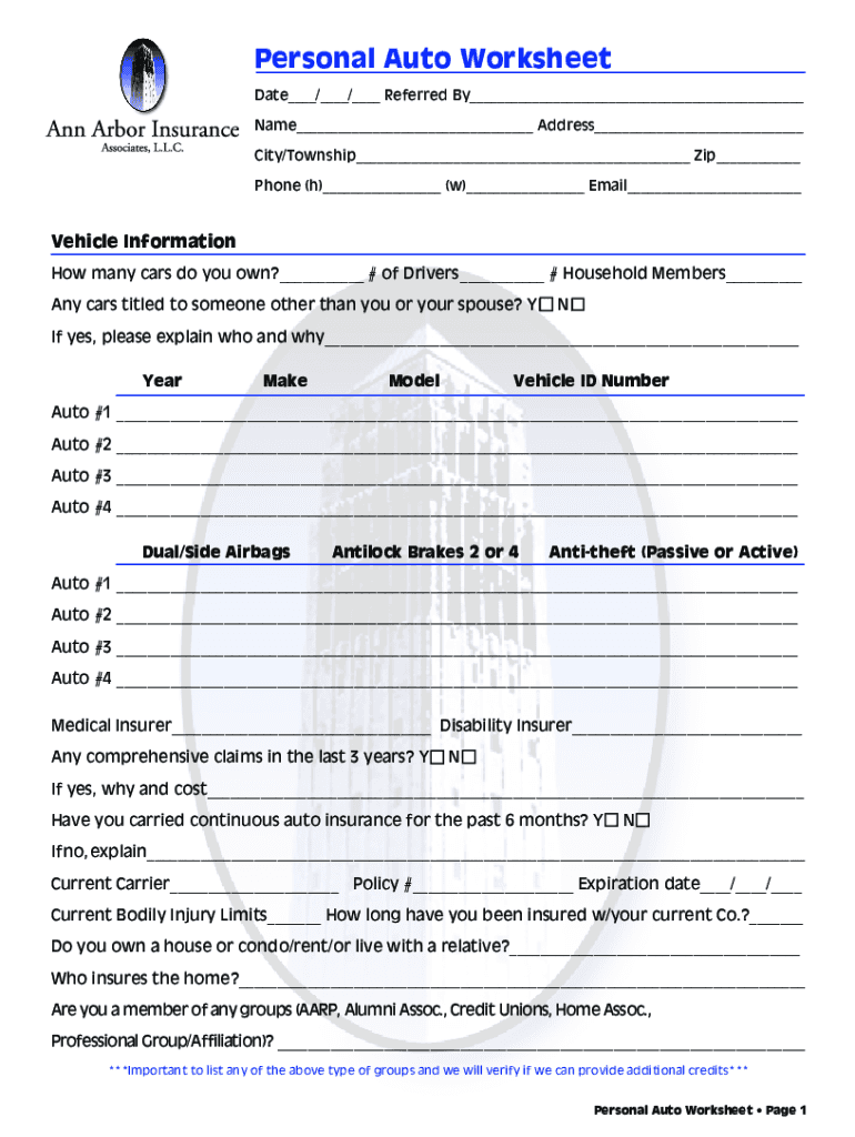How to fill out personal auto worksheet?