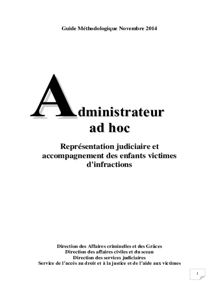 Guide Mthodologique November 2014Administrateur ad hocReprsentation judiciary ET accompaniment DES infants victims d\'infractionsDirection DES Affairs criminals et DES Graces Direction DES affairs