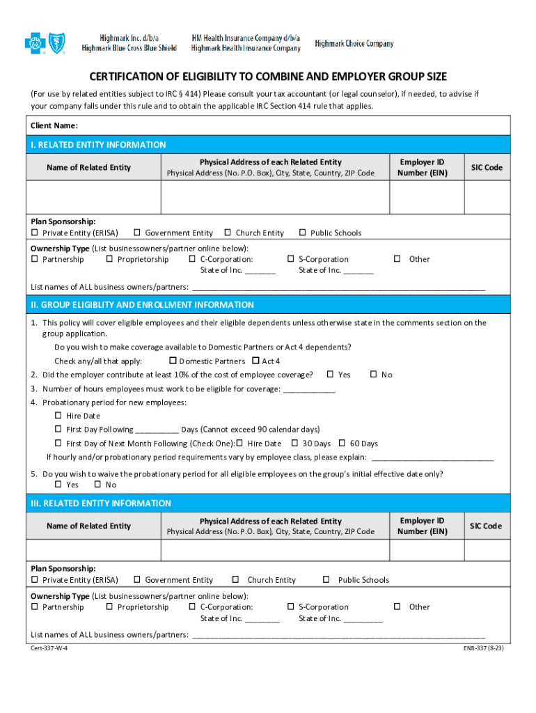 CERTIFICATION OF ELIGIBILITY TO COMBINE AND EMPLOYER GROUP SIZE (For use by related entities subject to IRC 414) Please consult your tax accountant (or legal counselor), if needed, to advise if your