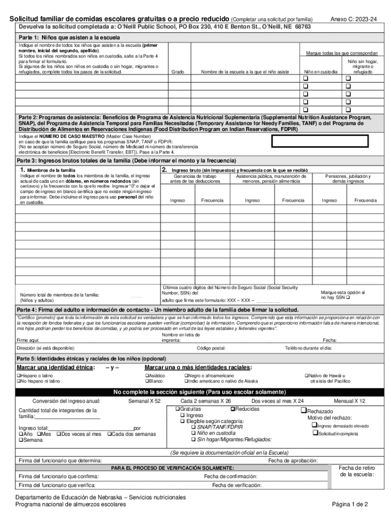 Solicited familiar DE comics escolars gratuitous o a précis reduced (Completer RNA solicited POR familiar)Next C: 202324Devuelva la solicited completed a: O'Neill Public School, PO Box 230, 410 E