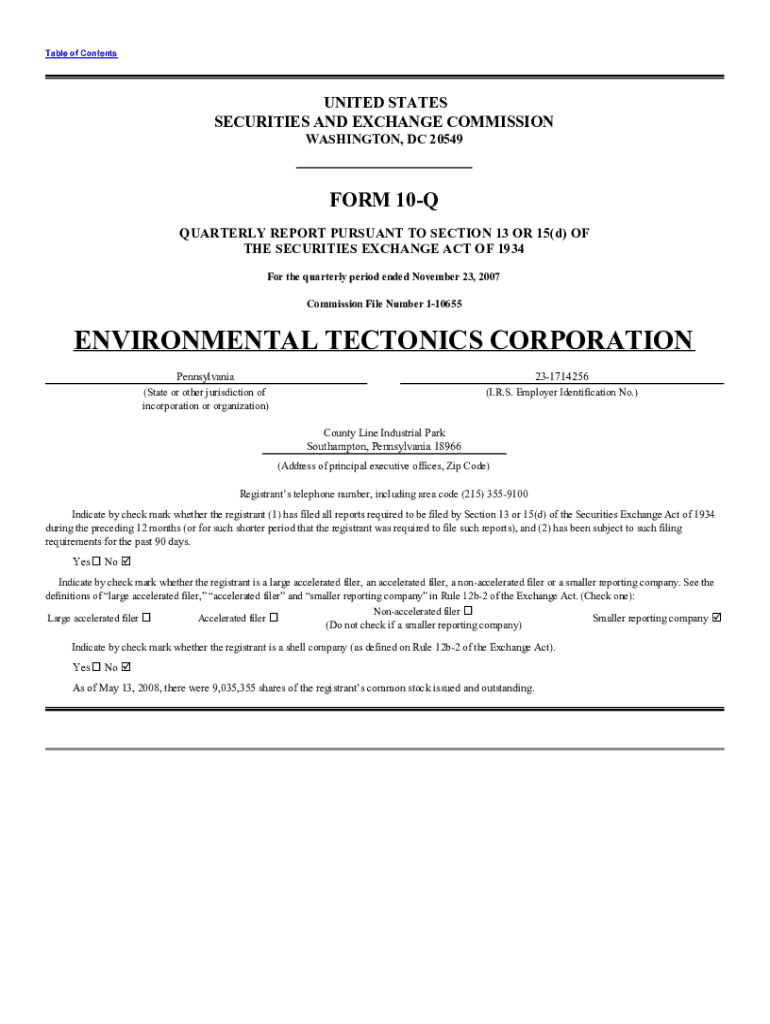 Get the free For the quarterly period ended November 23, 2007