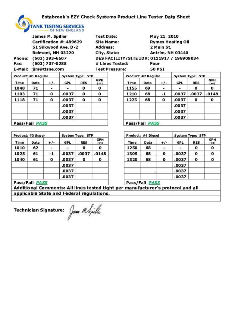 Get the free Estabrook's EZY Check Systems Product Line Tester Data Sheet ...