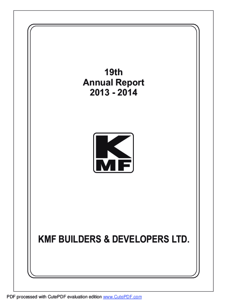 19th Annual Report 2013 2014MFKMF BUILDERS & DEVELOPERS LTD.PDF processed with Cute PDF evaluation edition www.CutePDF.comKMF BUILDERS & DEVELOPERS LIMITED BOARD OF DIRECTORS 1. KAVITA CHAD HA 2.