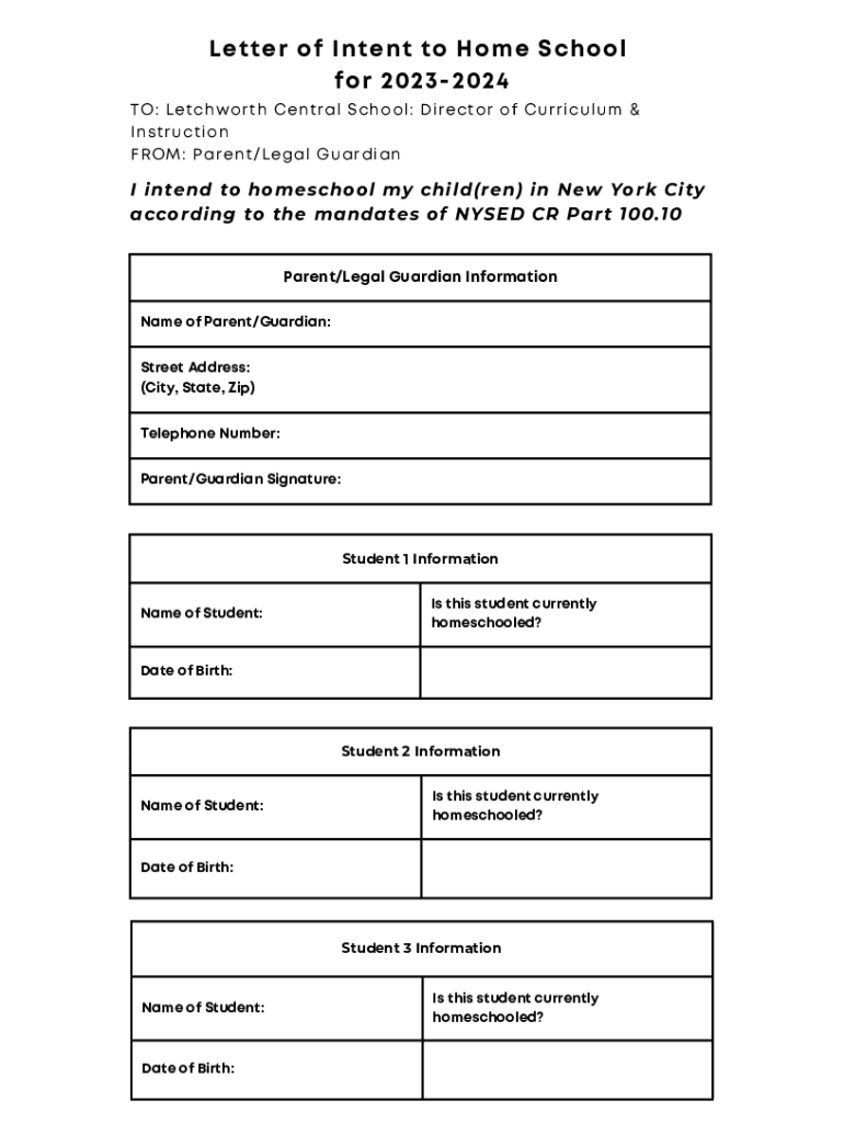 Letter of Intent to Home School