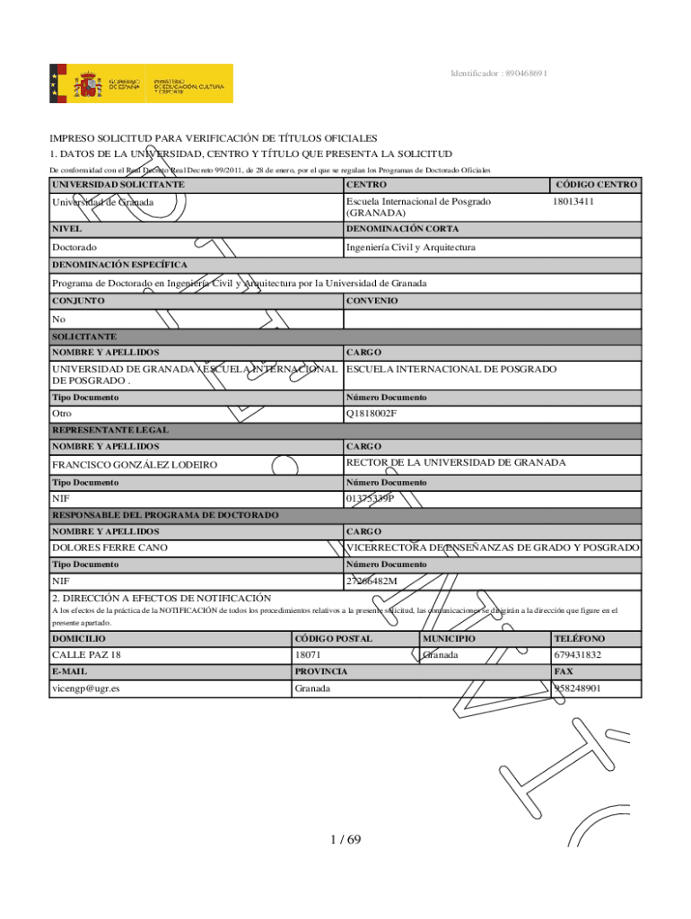 Identification : 890468691IMPRESO SOLICITED PARA VERIFICATION DE TOULON OFFICIALS 1. DATES DE LA UNIVERSITY, CENTR Y TTU LO QUE PRESENT ALA SOLICITED DE conforming con El Real Secret 99/2011, DE 28