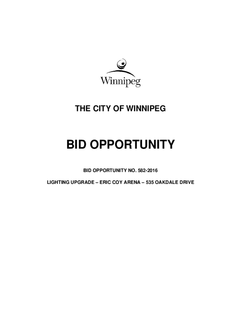 THE CITY OF WINNIPEG OPPORTUNITY BID OPPORTUNITY NO. 5822016 LIGHTING UPGRADE ERIC COY ARENA 535 OAKDALE Private City of Winnipeg Bid Opportunity No. 5822016Table of ContentsTemplate Version: C520150806