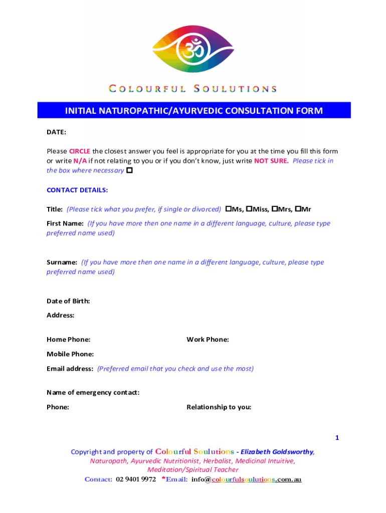 How to fill out initial naturopathicayurvedic consultation form