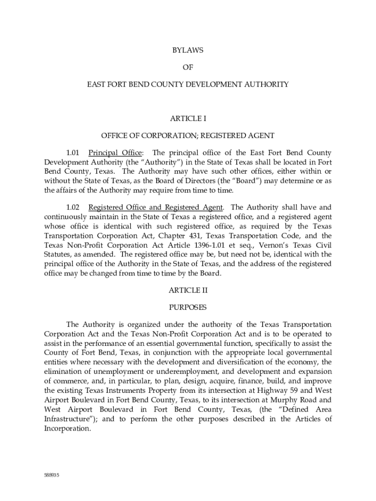 Get the free BYLAWS OF EAST FORT BEND COUNTY DEVELOPMENT ...