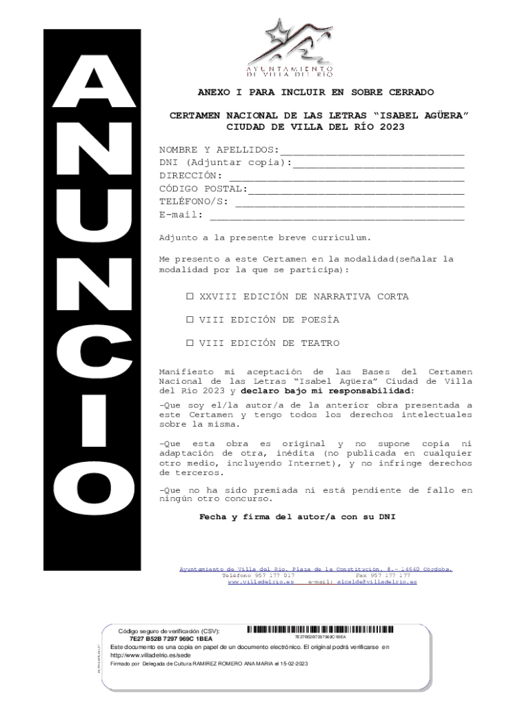 Obtener el gratis Certamen Nacional de las Letras 'Isabel Agera' Ciudad de ...