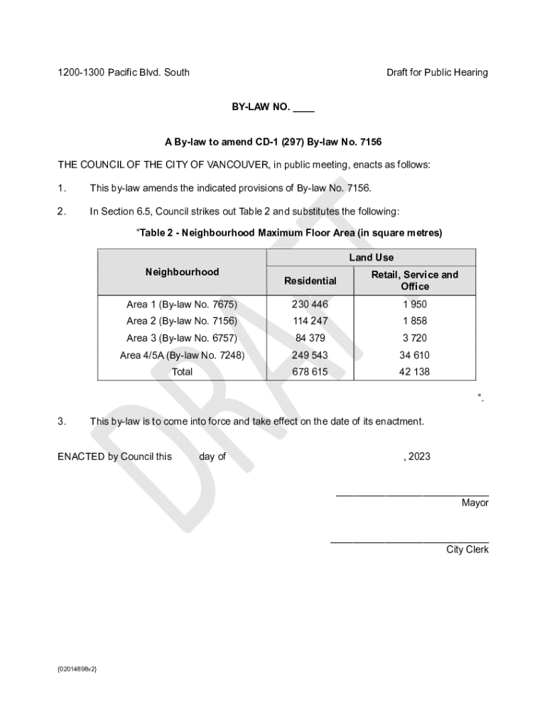 Get the free Amend CD-1 (297) By-law No. 7156 for 1200-1300 Pacific Blvd. South(02014902.DOCX;2)....