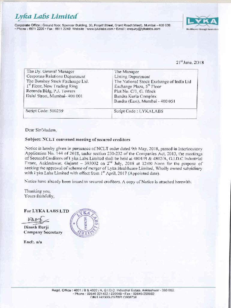 Corporate Office : First floor, Spencer Building, 30, Forest Street, Grant Road (West), Mumbai 400 036. Phone :6611 2200. Fax : 6611 2249 Website : www.lykalabs.com. Email :