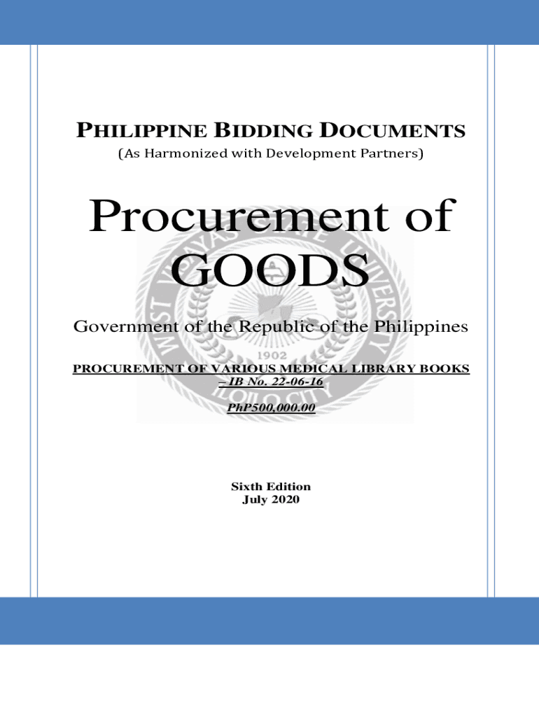 PHILIPPINE BIDDING DOCUMENTS (As Harmonized with Development Partners)Procurement of GOODS Government of the Republic of the Philippines PROCUREMENT OF VARIOUS MEDICAL LIBRARY BOOKS IB No. 220616