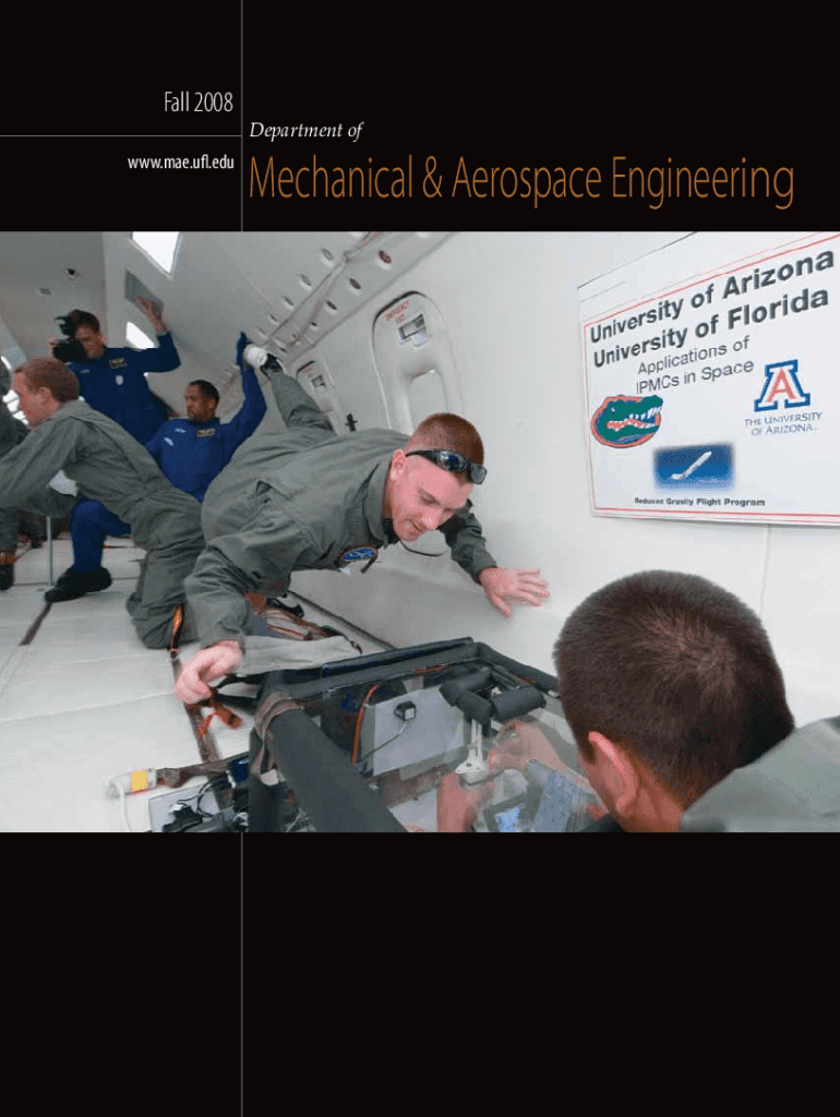 Fall 2008 www.mae.ufl.eduDepartment mechanical & Aerospace Engineering Gator Nation: Destination Space ON THE COVER: Tony Lizard performs research during a zero gravity period onboard NASA's Weightless