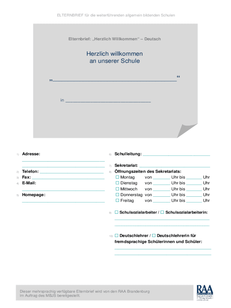 ELTERNBRIEF for die weiterfhrenden Algerian blended SchulenElternbrief: Heimlich Willkommen DeutschHerzlich willkommen an unseen Schulz___ in ___1)Address:6)Schulleitung: ______7)Telephone: ___ Fax: