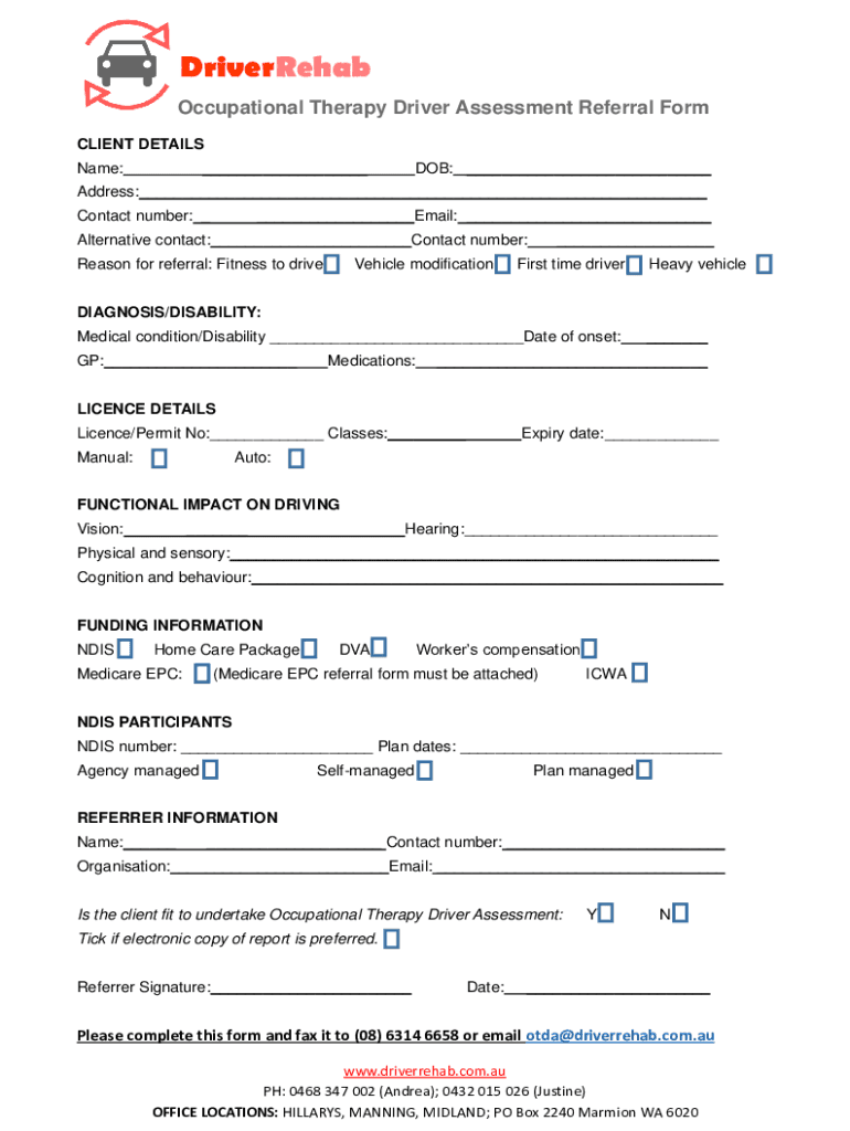 Occupational Therapy Driver Assessment Referral Form