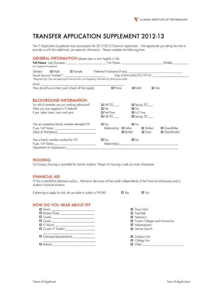 Get the free 2012-13 Transfer Application Form