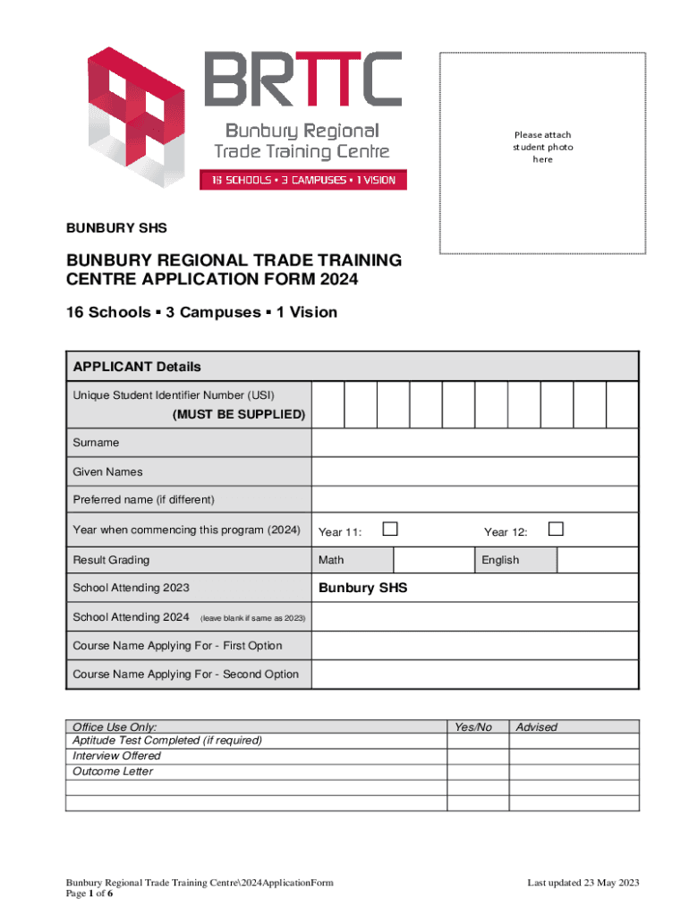 Get the free bunbury regional trade training centre application form 2024