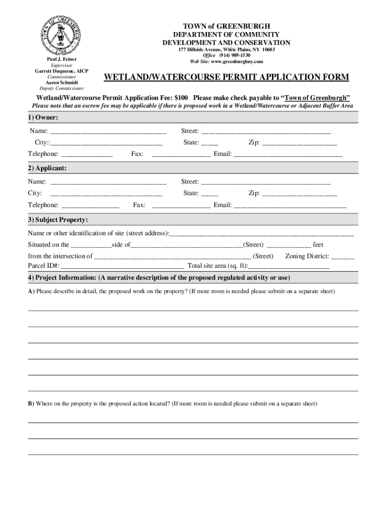 Wetland-Watercourse Permit Application Form is not the form you're looking for?Search for another form here.