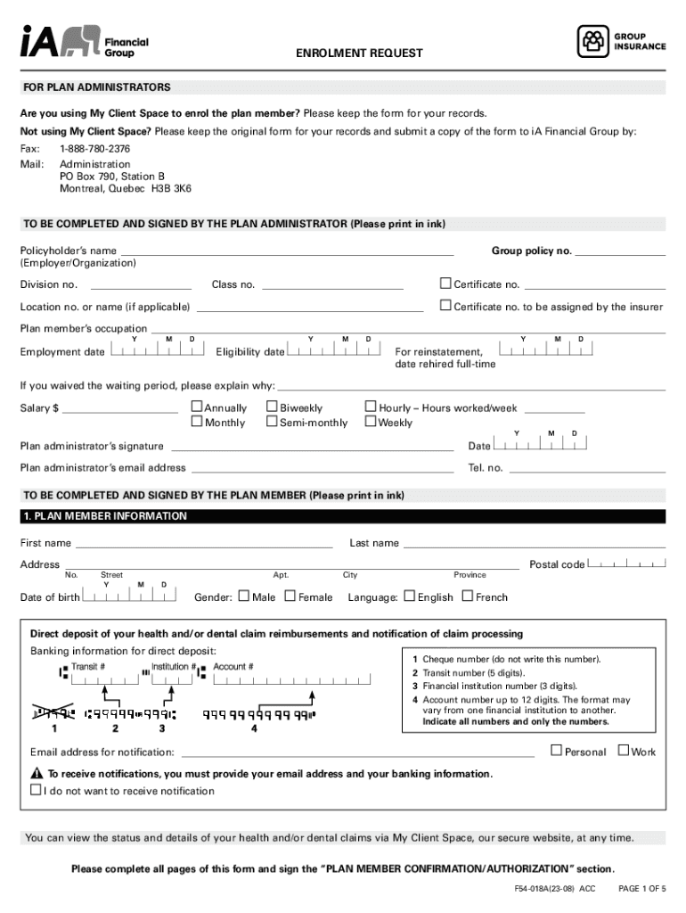 Enrollment REQUEST FOR PLAN ADMINISTRATORS Are you using My Client Space to enrol the plan member? Please keep the form for your records. Not using My Client Space? Please keep the original form for