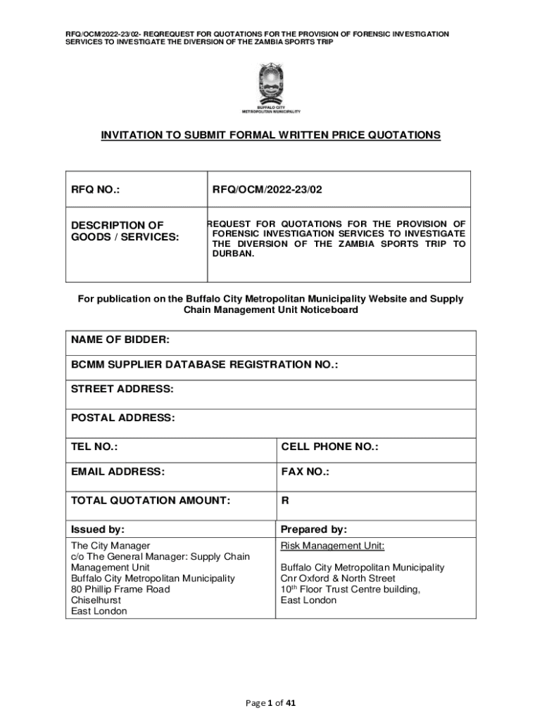 Get the free RFQ/OCM/2022-23/02- REQREQUEST FOR QUOTATIONS FOR THE PROVISION OF FORENSIC INVESTIG...