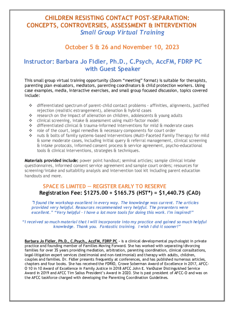 Get the free Children Who Resist Postseparation Parental Contact: A ...