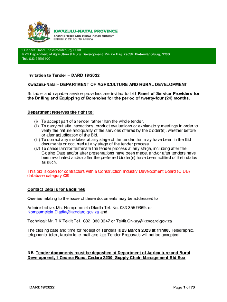 Tells: 033 355 9100Invitation to Tender HARD 18/2022