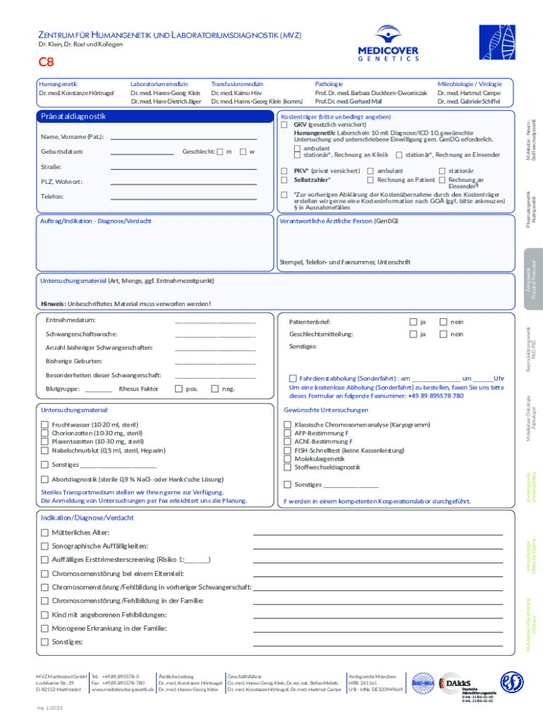 Z ANTRUM FR H UMANGENETIK UND L ABORATORIUMSDIAGNOSTIK (MVP)