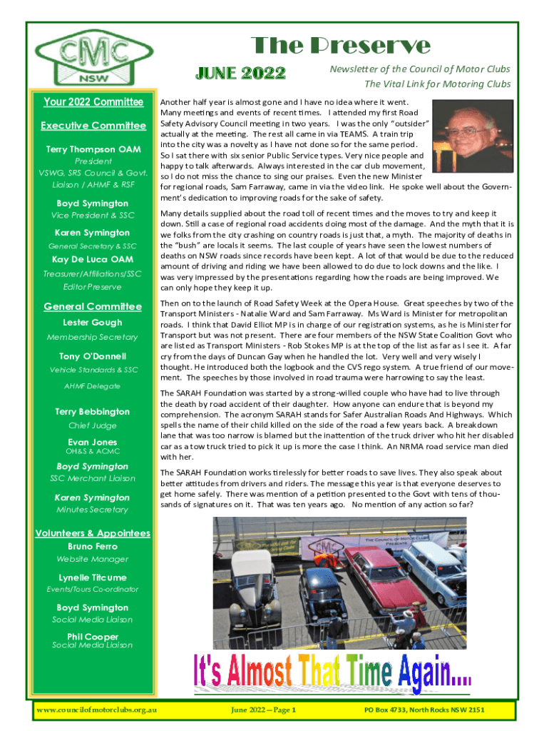 The Preserve JUNE 2022 Your 2022 Committee Executive Committee Terry Thompson OAM President VSG, SRS Council & Govt. Liaison / AHF & RSF Boyd Remington Vice President & McKean Remington General Secretary