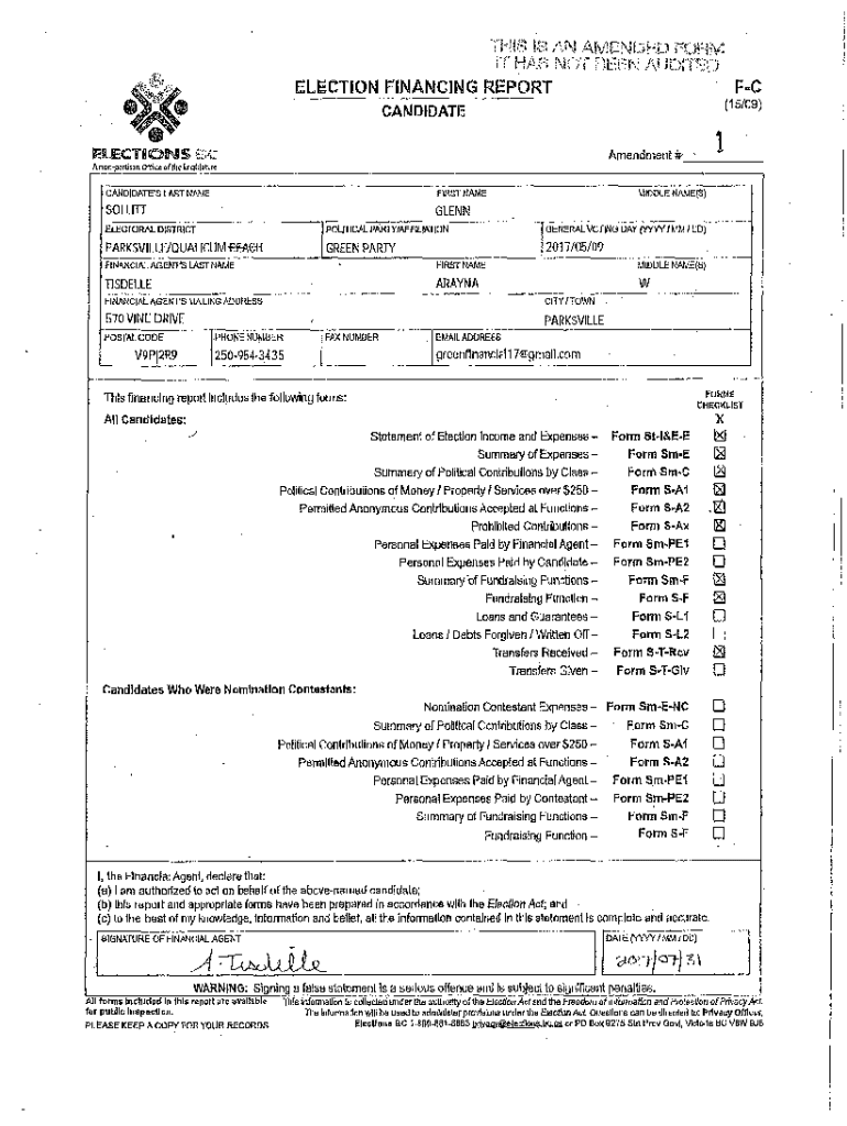 I ! I:;;;,.,ELECTION FINANCING REPORT FC