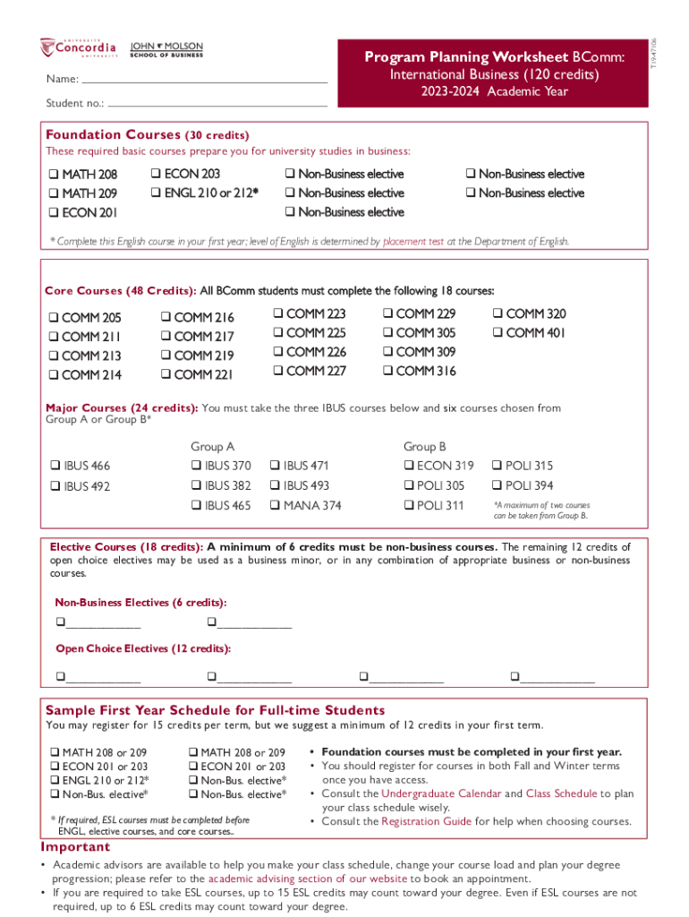 Name:20232024 Academic YearStudent no.:Foundation Courses (30 credits) These required basic courses prepare you for university studies in business: MATH 208 MATH 209 ECON 201 ECON 203 EGL 210 or 212*