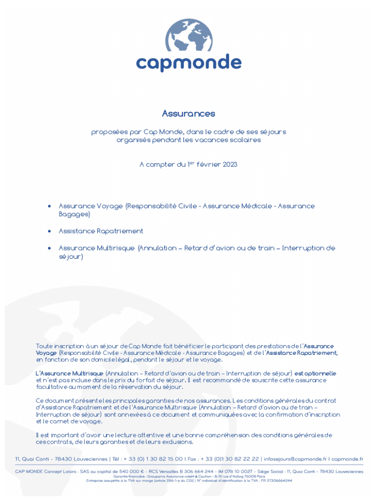 A computer Du 1er frier 2023Assurance Voyage (Responsibility Civil Assurance Medical Assurance