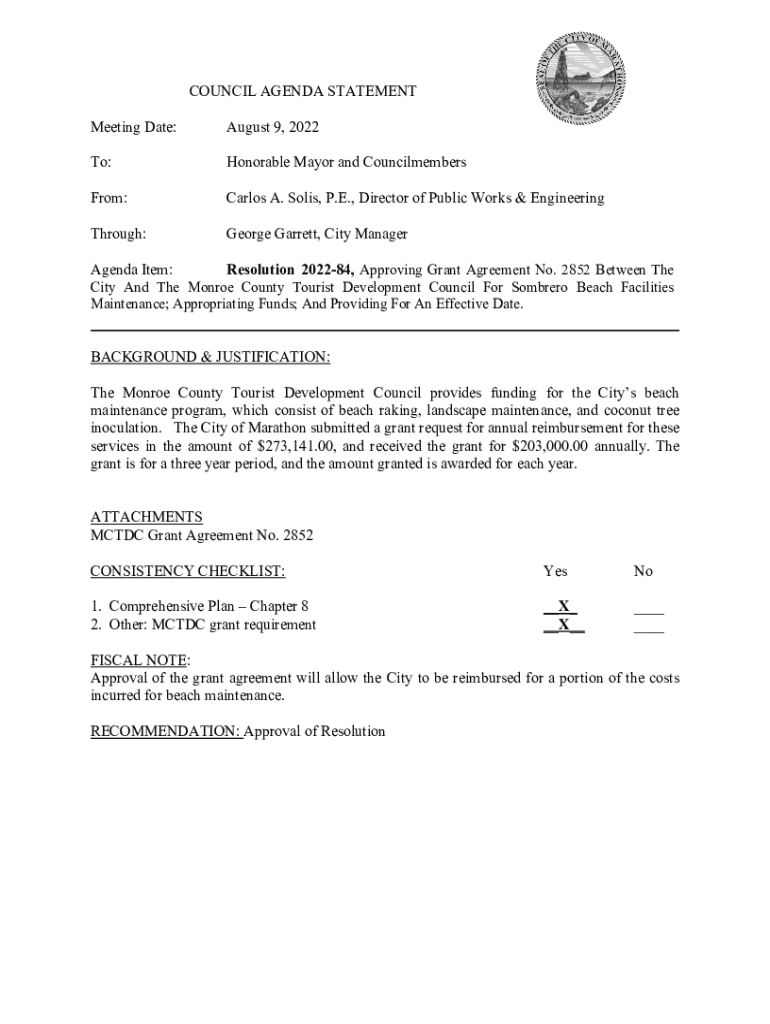 Meeting Date:August 9, 2022To:Honorable Mayor and CouncilmembersFrom:Carlos A. Solis, P.E., Director of Public Works & EngineeringThrough:George Garrett, City ManagerAgenda
