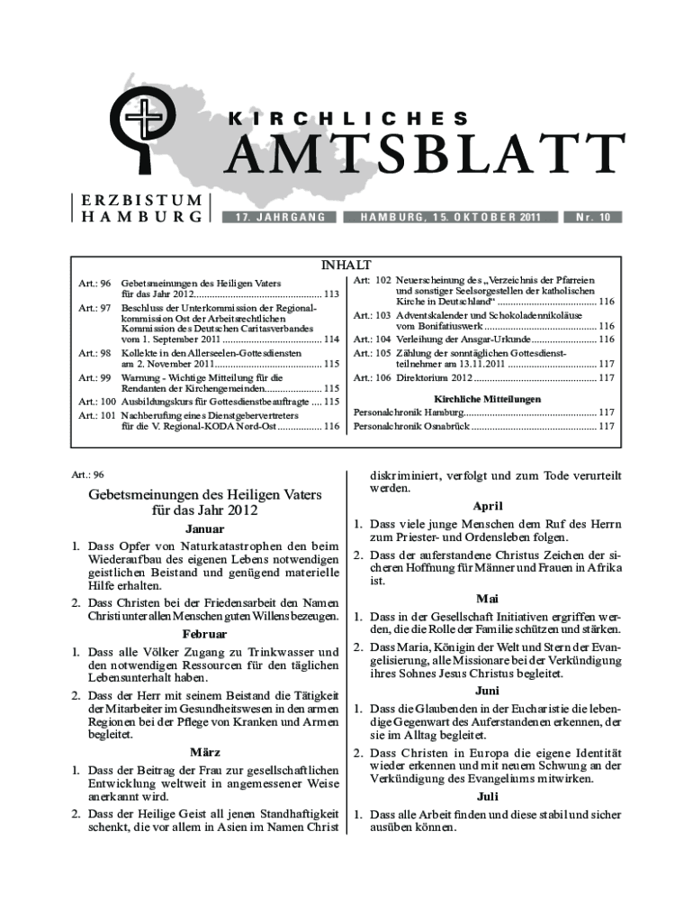 KIRCHLICHES AMTSBLATT Erbium Hamburg, 17. Charging, NR. 10, 15.10.2011113K I R C H L I C H E SAMTSBLATT
