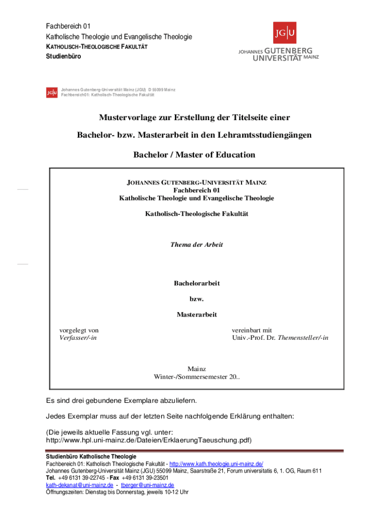 Holen Sie sich kostenlos bzw. Masterarbeit in den Lehramtsstudiengngen Bachelor ...