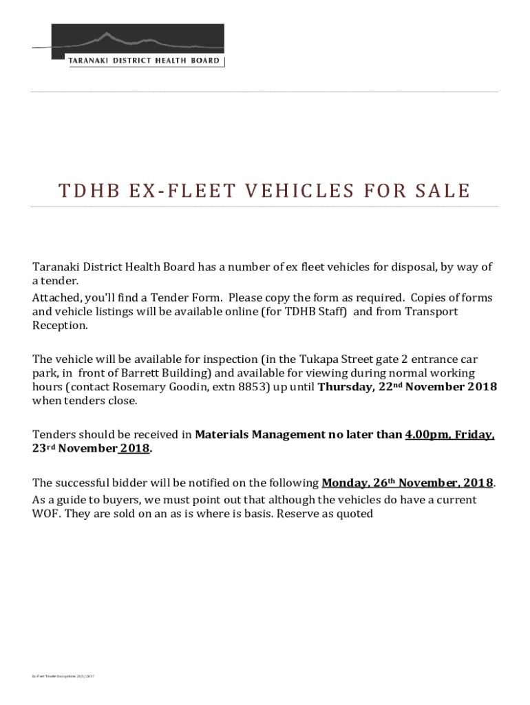 Get the free TDHB-Ex-Fleet-Vehicle-Tender-Oct-2018. ...