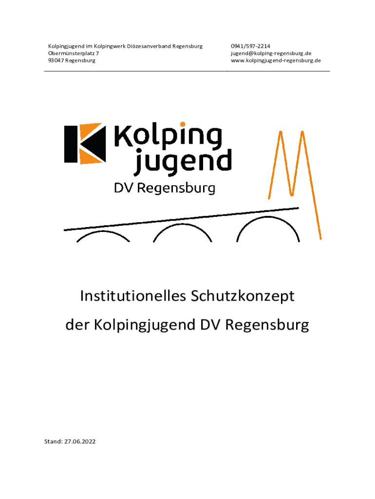 Kolpingjugend I'm Kolpingwerk Dizesanverband Regensburg Obermnsterplatz 7 93047 Regensburg0941/5972214 jugend@kolpingregensburg.de www.kolpingjugendregensburg.deInstitutionelles Schutzkonzept her