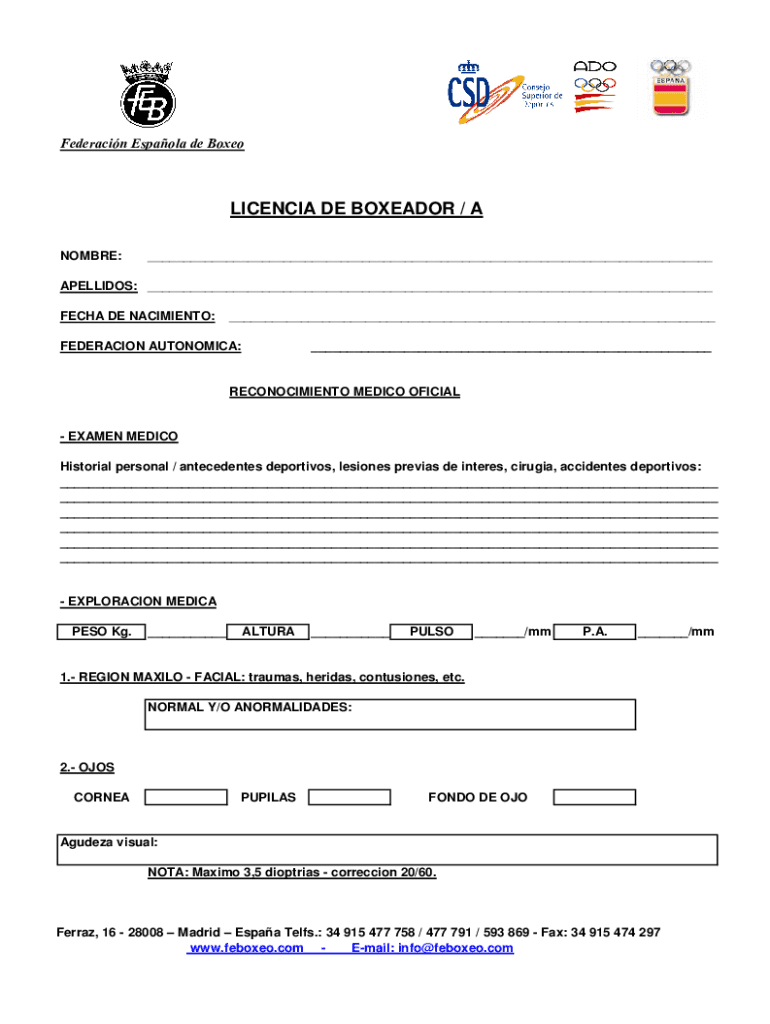 El Formulario de Licencia de Boxeo Español es un documento utilizado por boxeadores en España para obtener el reconocimiento oficial de la Federación Española de Boxeo.