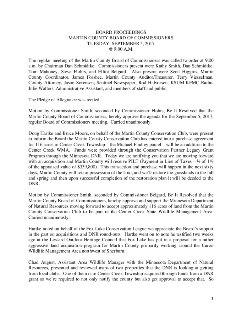 Get the free 1 BOARD PROCEEDINGS MARTIN COUNTY ...