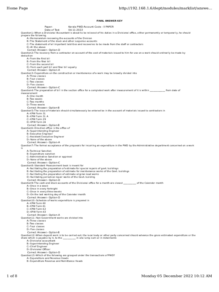 Home Pagehttp://192.168.1.6/dept/modules/mark list/answer...FINAL ANSWER Flypaper: Date of TestKerala PhD Account Code II PAPER 04112022Question1:When a Divisional Accountant is about to be relieved