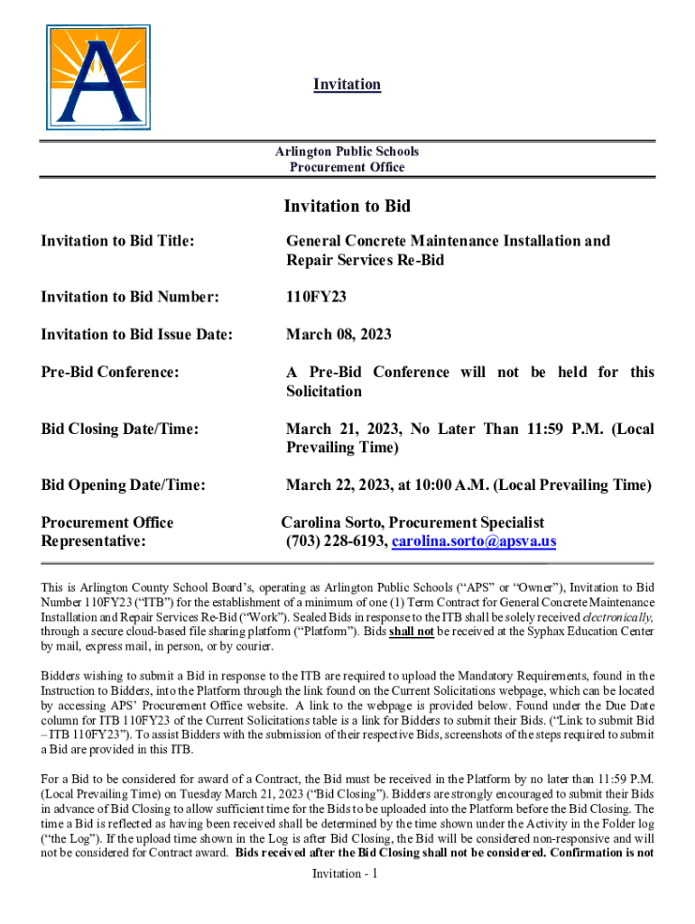 Invitation to Bid Title:General Concrete Maintenance Installation and
